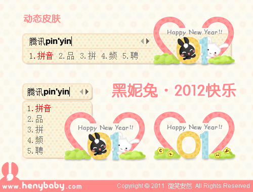 1、皮肤切换:用户(hù)可以在QQ拼音输入法中轻松切换(🈴)至2012快乐皮(pí)肤,享受全新(xīn)的输(👜)入界面。