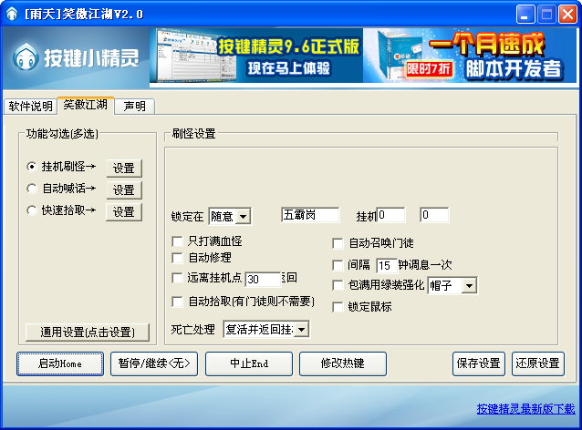 1、“雨天笑傲江湖ol辅助(zhù)”提(tí)供(🍩)了自动打怪功能(👥),玩家可以设置好打怪范围(wéi)和技能释放,轻松(🤖)实(🍆)现自动化战斗,省时(shí)省力(lì)。